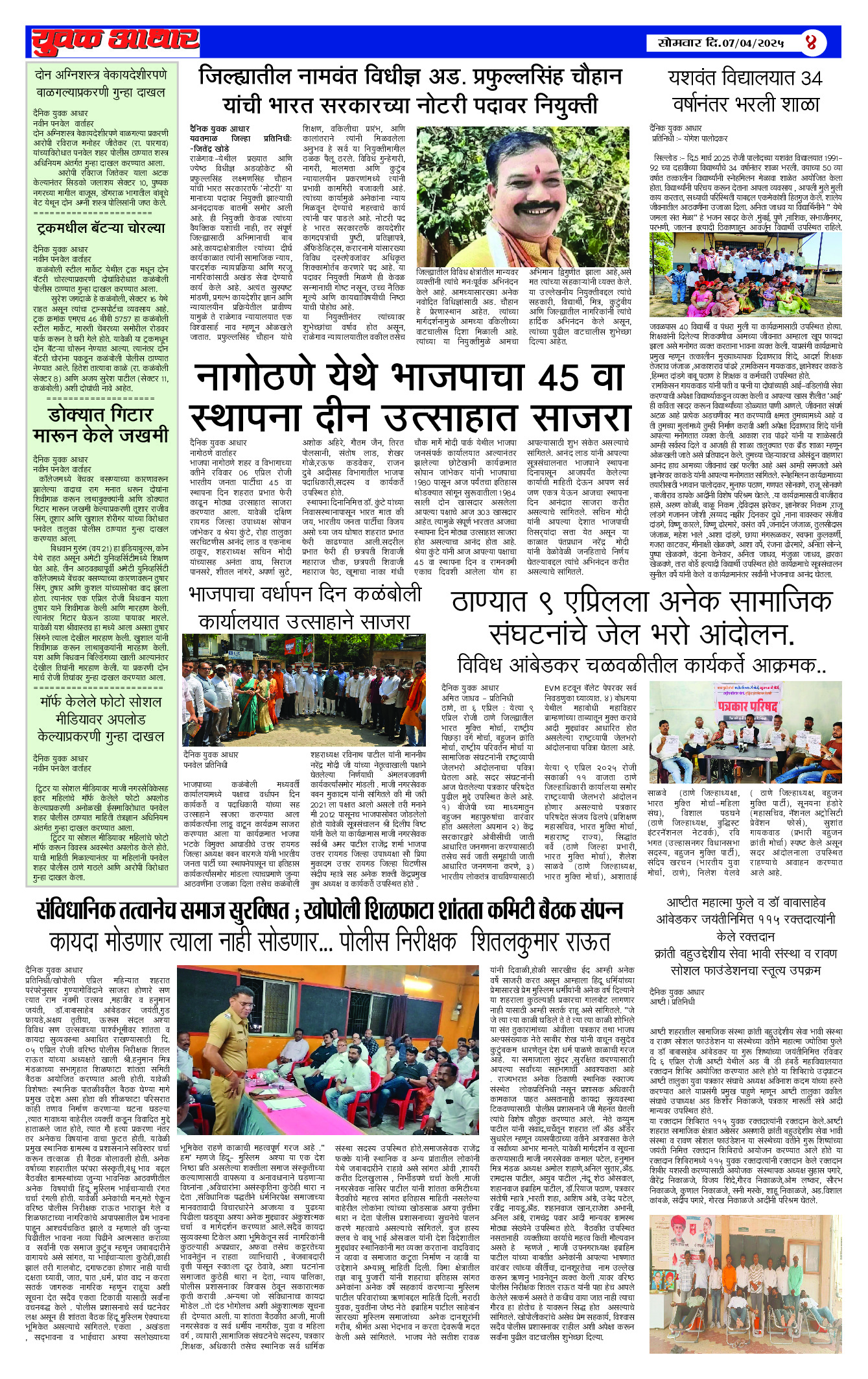 YUVAK AADHAR Page: 4 April 07, 2025 << First << 4 >> Last >> Page 1Page 2Page 3Page 4Page 5 × YUVAK AADHAR << First << 4 >> Last >> Page 1Page 2Page 3Page 4Page 5