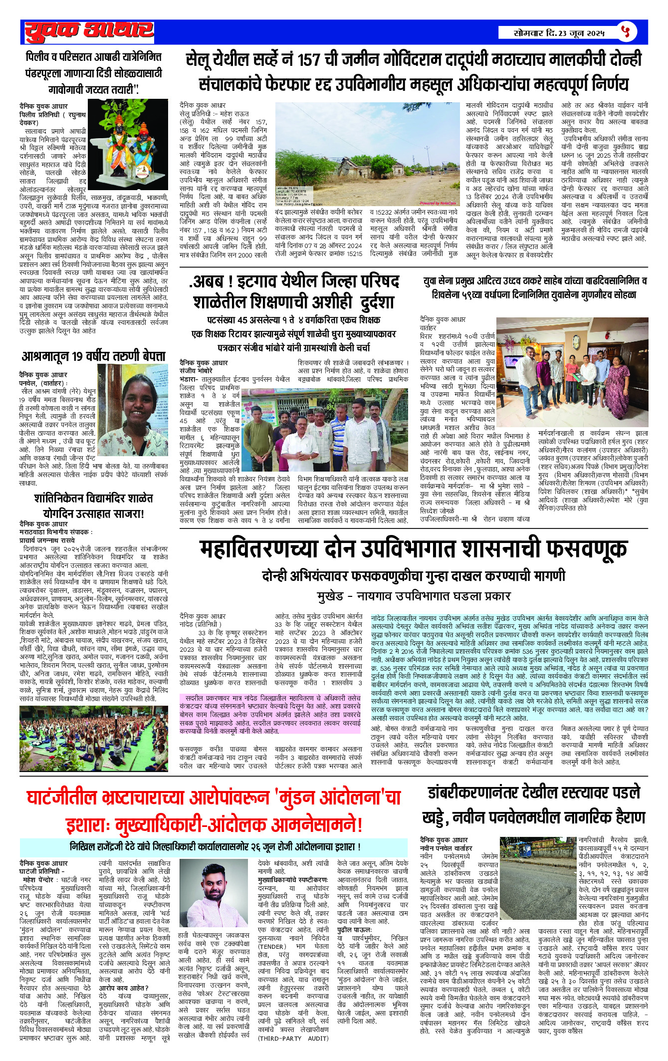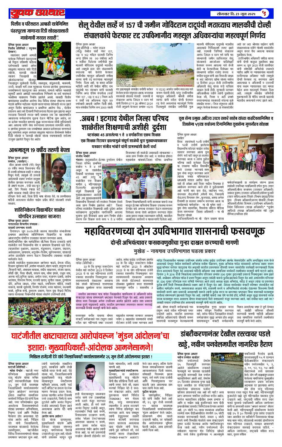 YUVAK AADHAR Page: 5 June 23, 2025 << First << 5 >> Last >> Page 1Page 2Page 3Page 4Page 5 × YUVAK AADHAR << First << 5 >> Last >> Page 1Page 2Page 3Page 4Page 5
