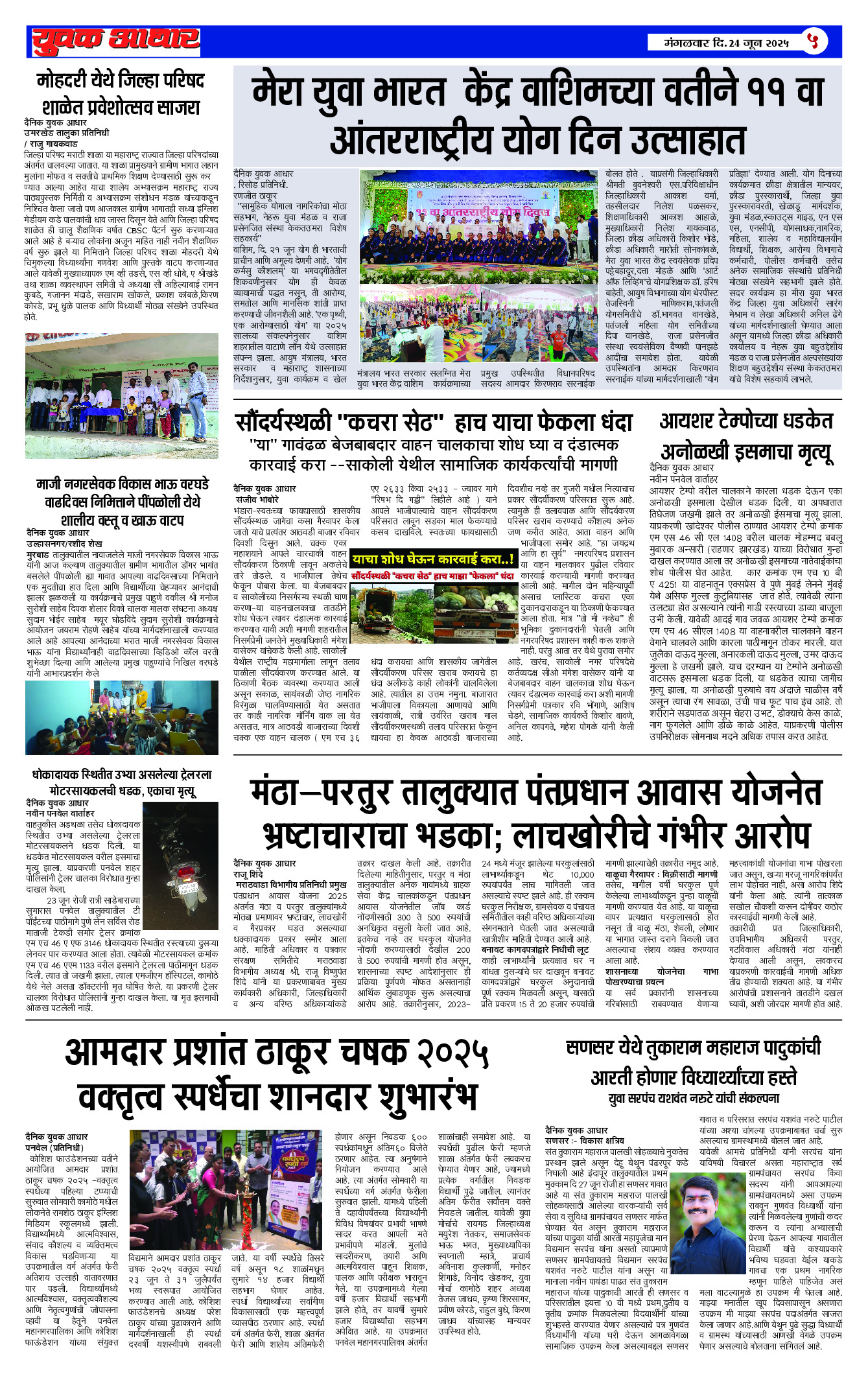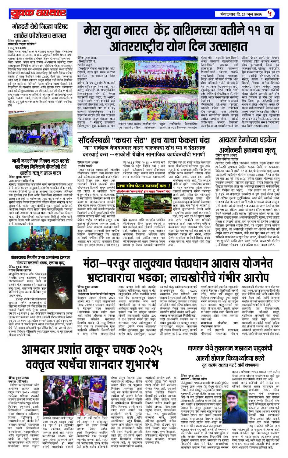 YUVAK AADHAR Page: 5 June 24, 2025 << First << 5 >> Last >> Page 1Page 2Page 3Page 4Page 5 × YUVAK AADHAR << First << 5 >> Last >> Page 1Page 2Page 3Page 4Page 5