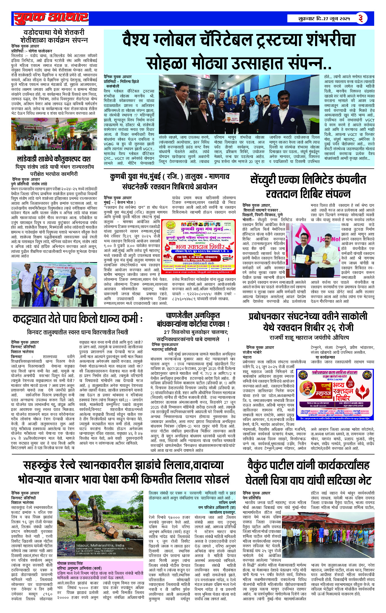 YUVAK AADHAR Page: 3 June 27, 2025 << First << 3 >> Last >> Page 1Page 2Page 3Page 4Page 5 × YUVAK AADHAR << First << 3 >> Last >> Page 1Page 2Page 3Page 4Page 5