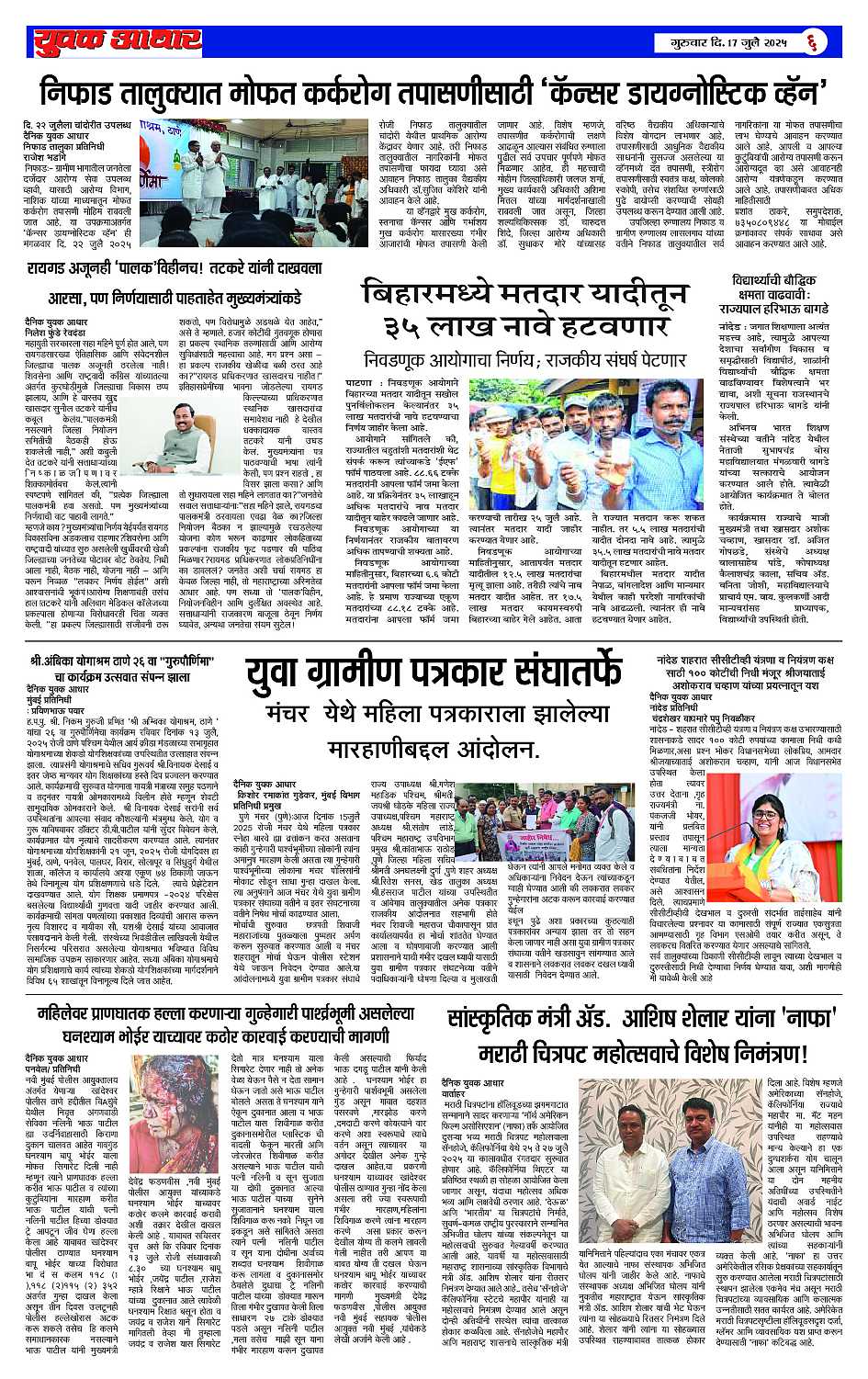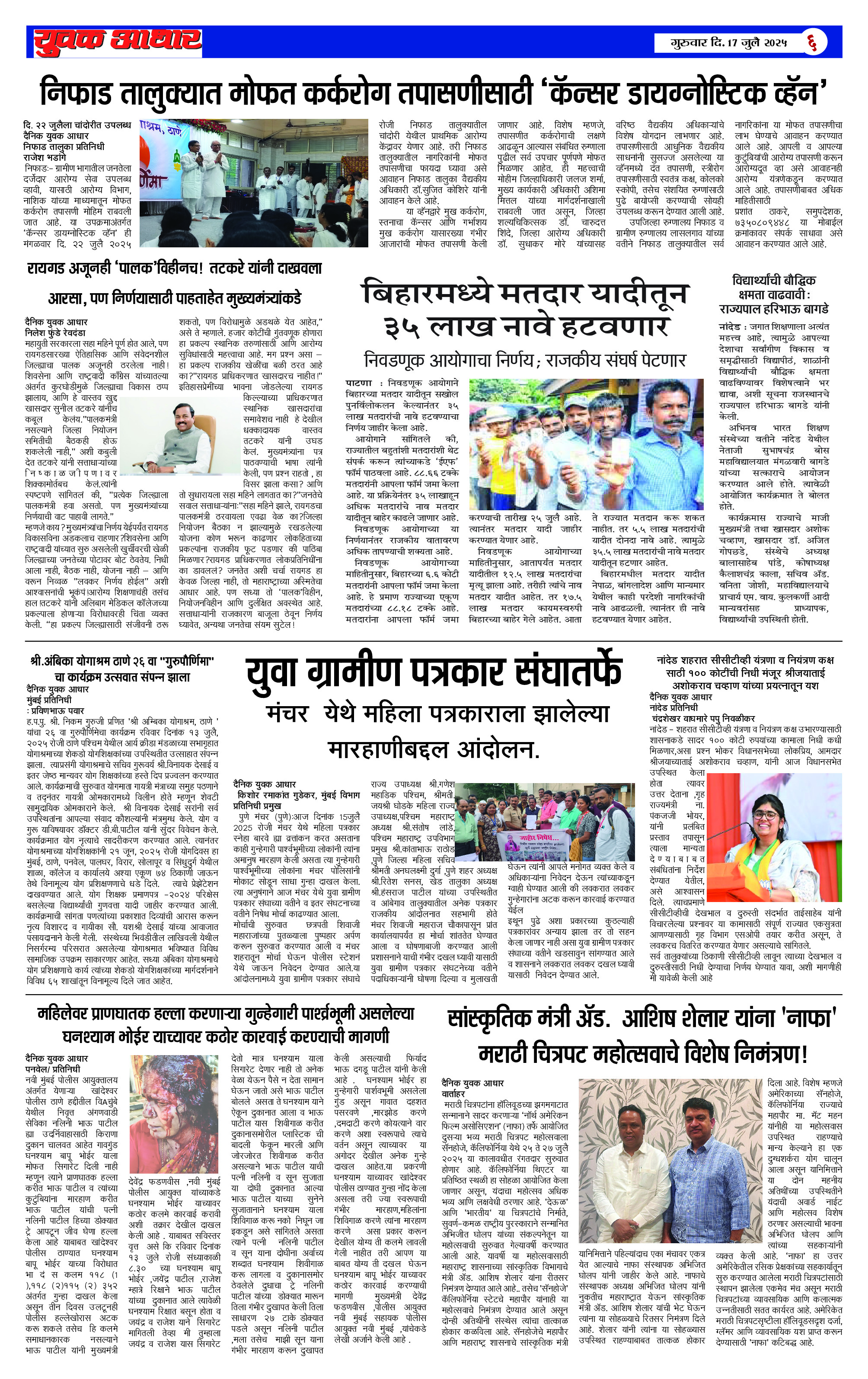 YUVAK AADHAR Page: 6 July 17, 2025 << First << 6 >> Last >> Page 1Page 2Page 3Page 4Page 5Page 6 × YUVAK AADHAR << First << 6 >> Last >> Page 1Page 2Page 3Page 4Page 5Page 6