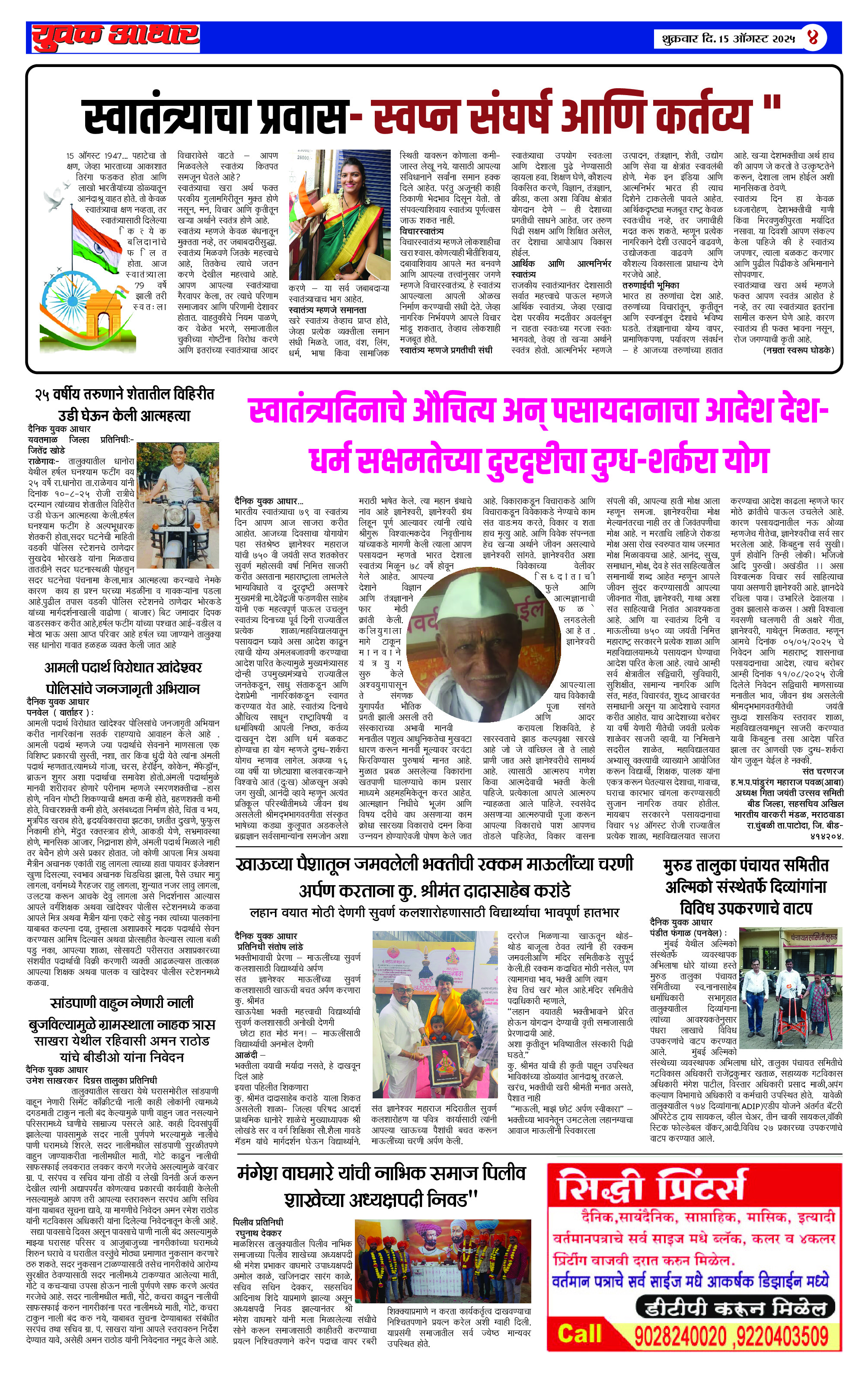YUVAK AADHAR Page: 4 August 15, 2025 << First << 4 >> Last >> Page 1Page 2Page 3Page 4Page 5Page 6Page 7 × YUVAK AADHAR << First << 4 >> Last >> Page 1Page 2Page 3Page 4Page 5Page 6Page 2