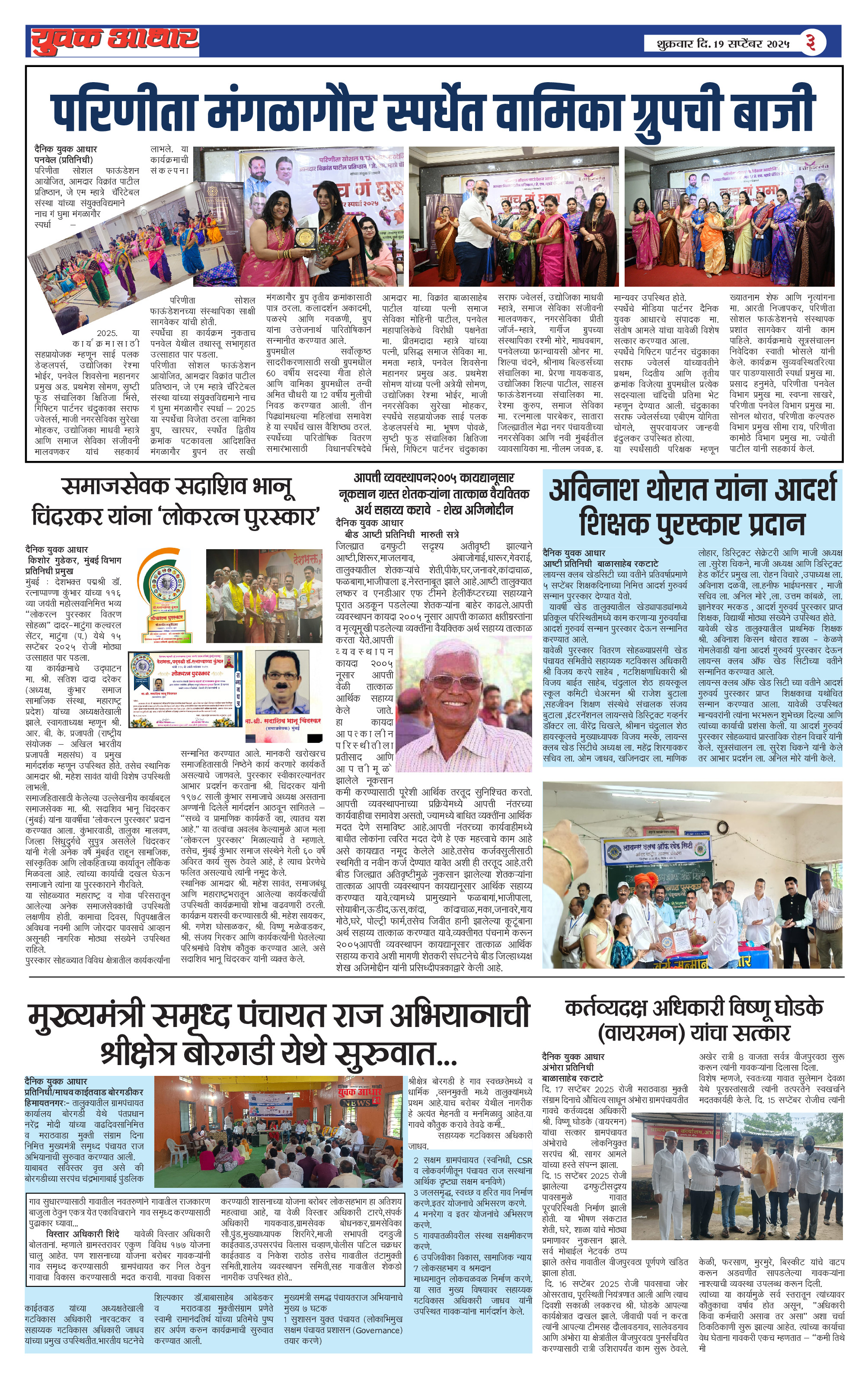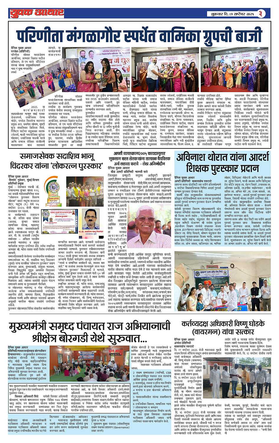 YUVAK AADHAR Page: 3 September 19, 2025 << First << 3 >> Last >> Page 1Page 2Page 3Page 4Page 5Page 6 × YUVAK AADHAR << First << 3 >> Last >> Page 1Page 2Page 3Page 4Page 5Page 6