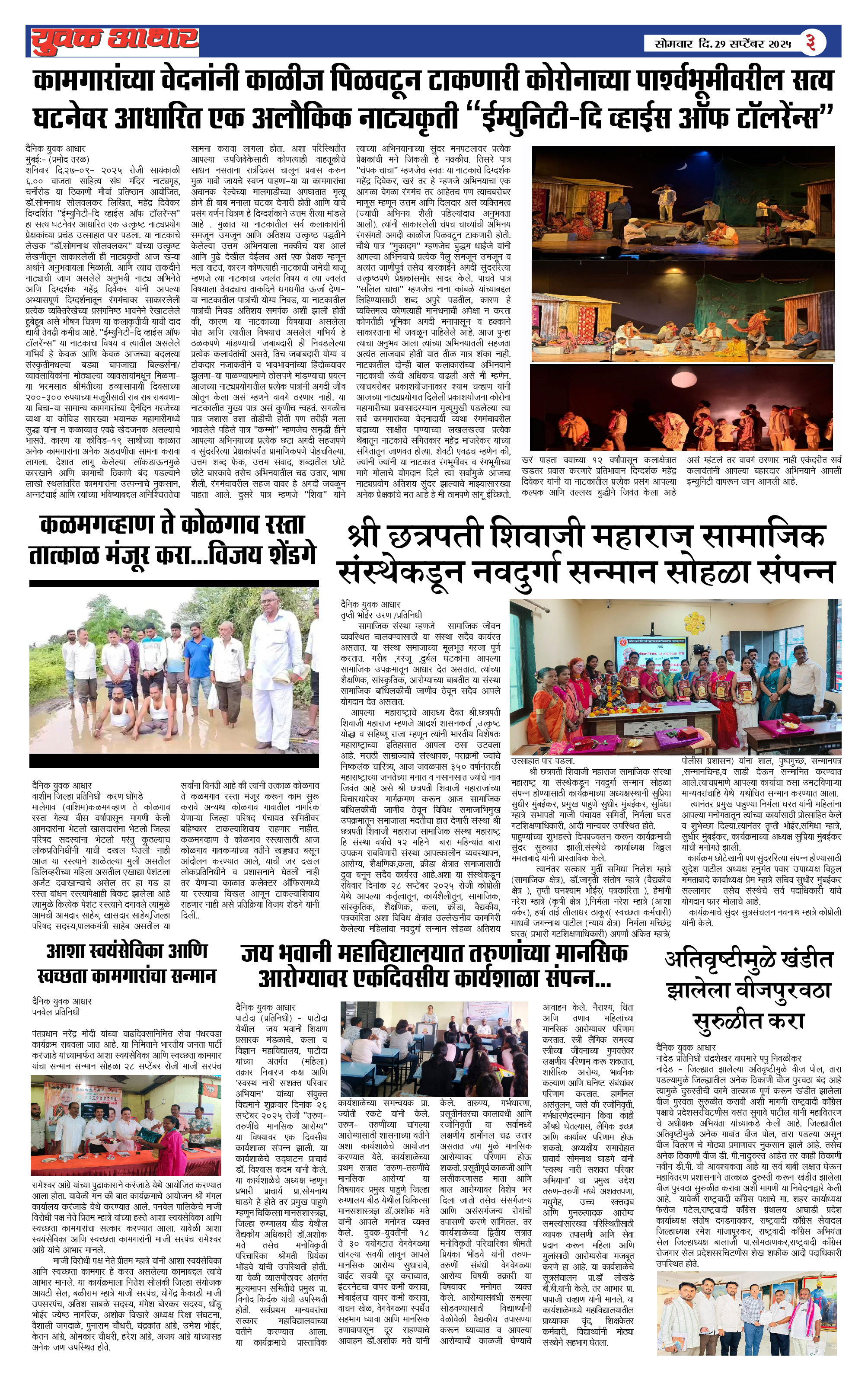 YUVAK AADHAR Page: 3 September 29, 2025 << First << 3 >> Last >> Page 1Page 2Page 3Page 4Page 5Page 6 × YUVAK AADHAR << First << 3 >> Last >> Page 1Page 2Page 3Page 4Page 5Page 6