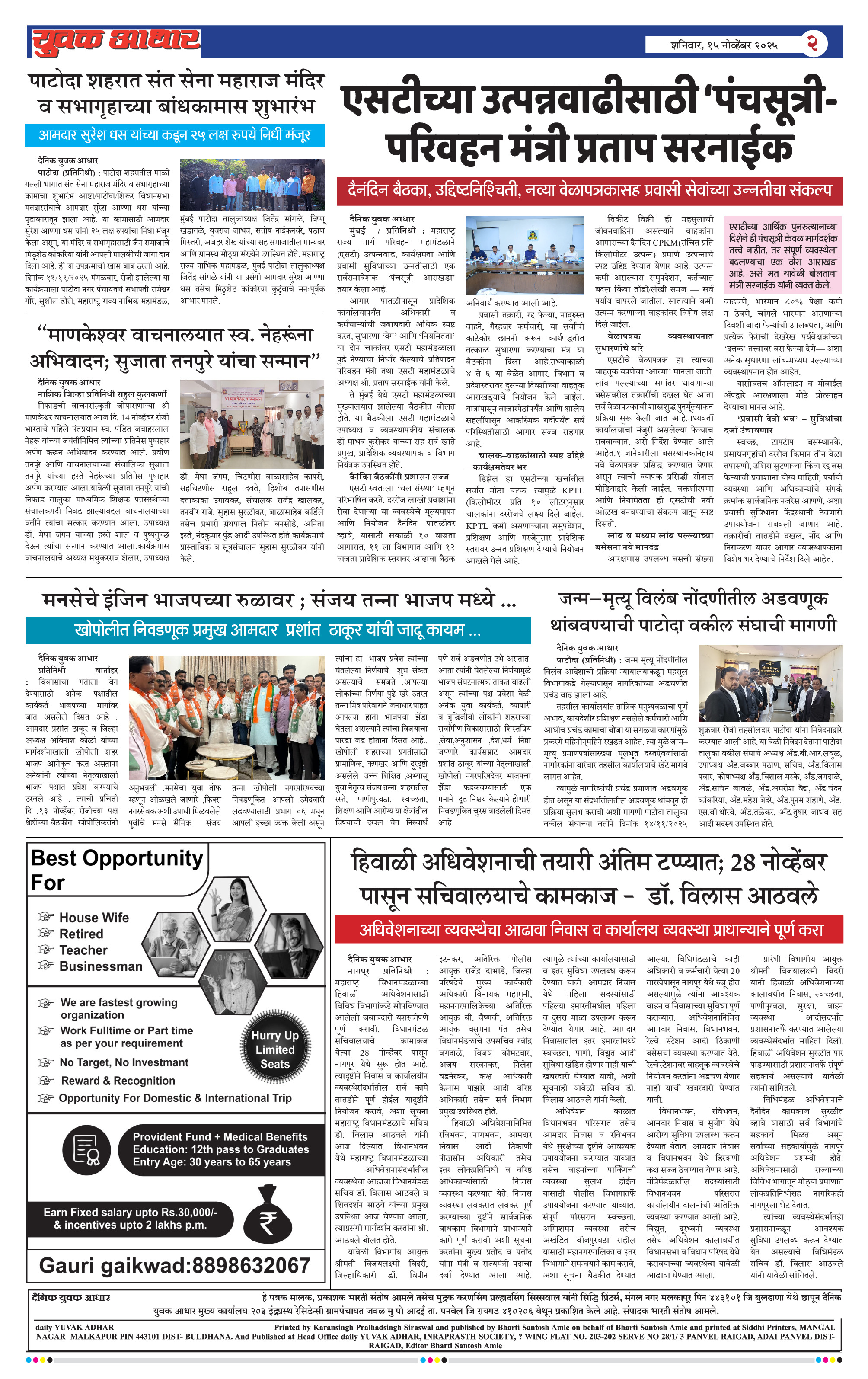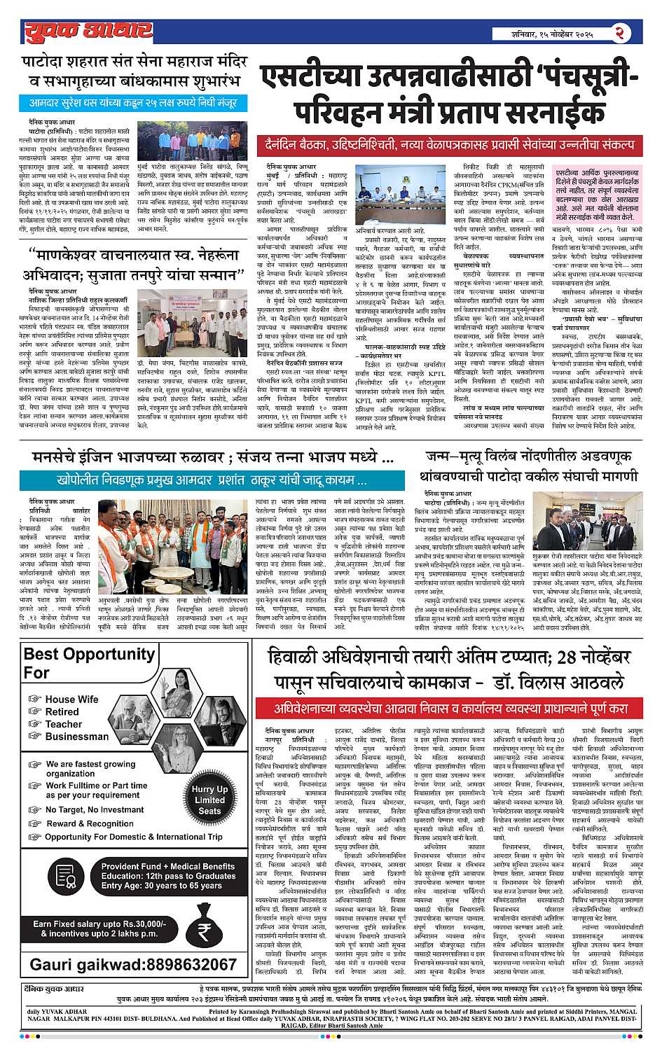 YUVAK AADHAR Page: 2 November 15, 2025 << First << 2 >> Last >> Page 1Page 2Page 3Page 4Page 5Page 6Page 7Page 8 × YUVAK AADHAR << First << 2 >> Last >> Page 1Page 2Page 3Page 4Page 5Page 6Page 7Page 8