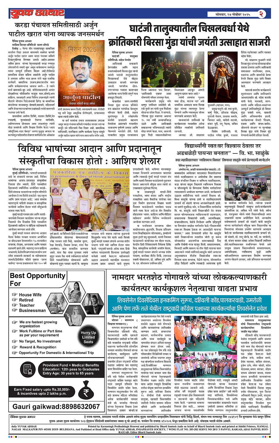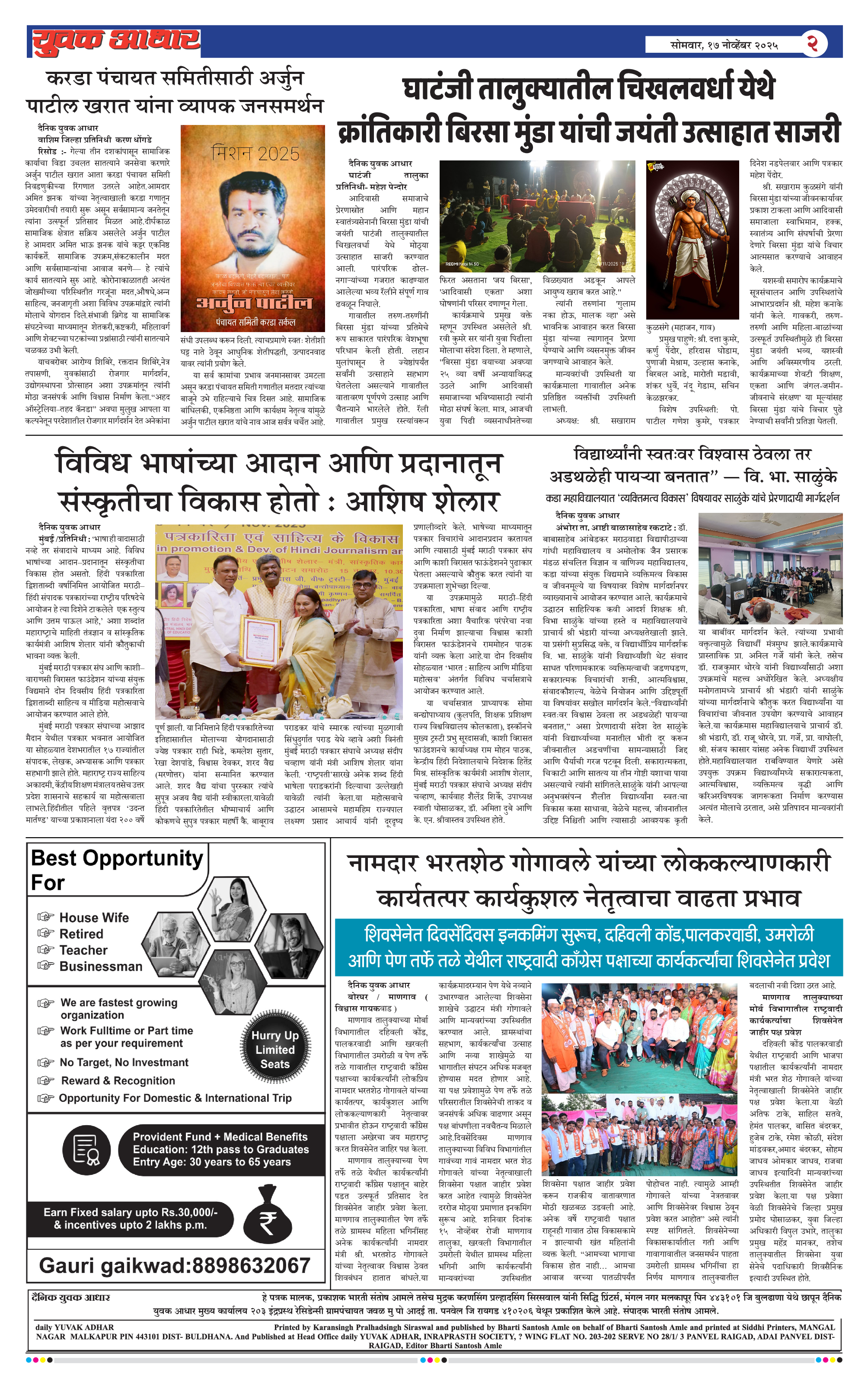 YUVAK AADHAR Page: 2 November 17, 2025 << First << 2 >> Last >> Page 1Page 2Page 3Page 4Page 5Page 6Page 7Page 8 × YUVAK AADHAR Full PDF << First << 2 >> Last >> Page 1Page 2Page 3Page 4Page 5Page 6Page 7Page 8
