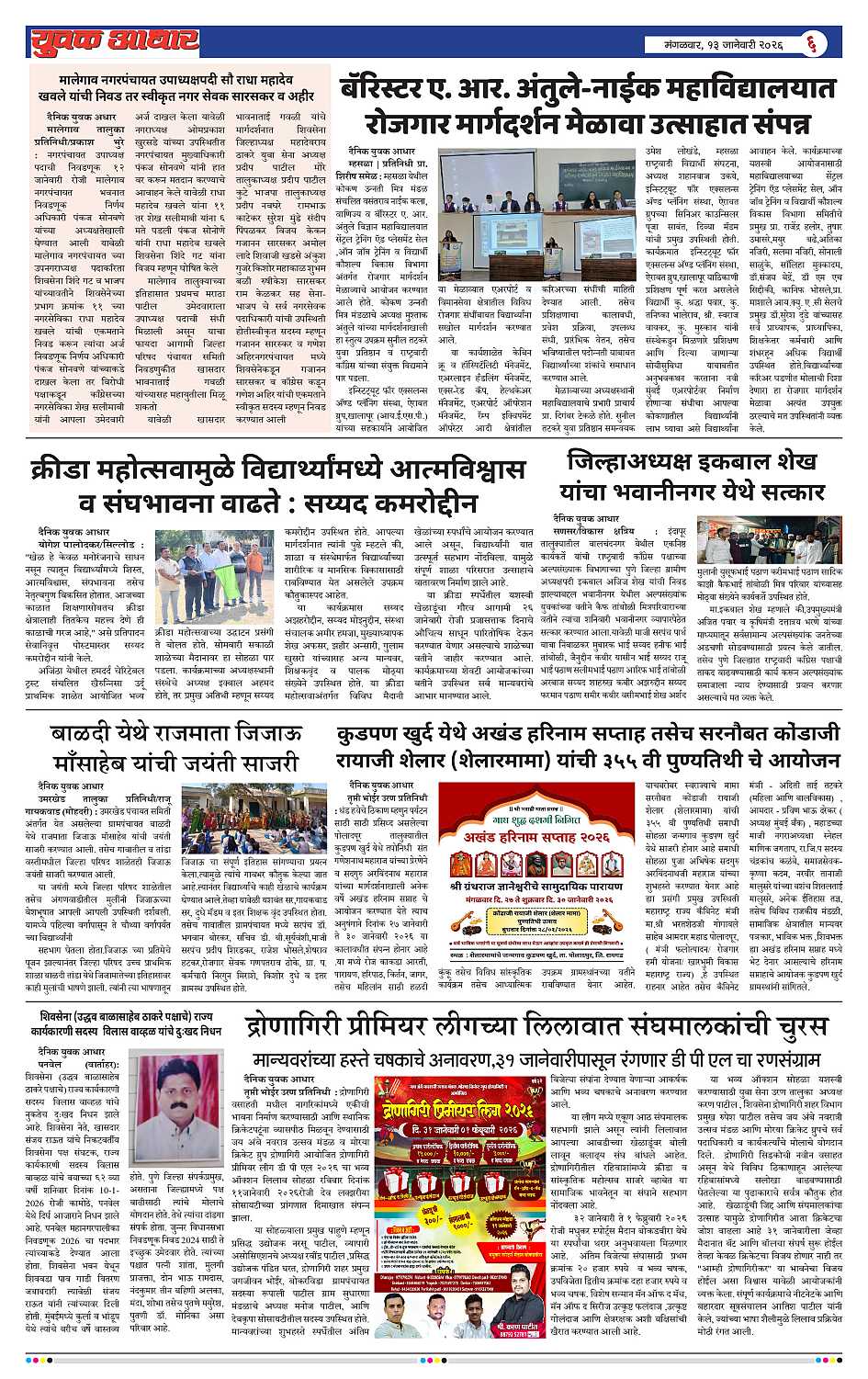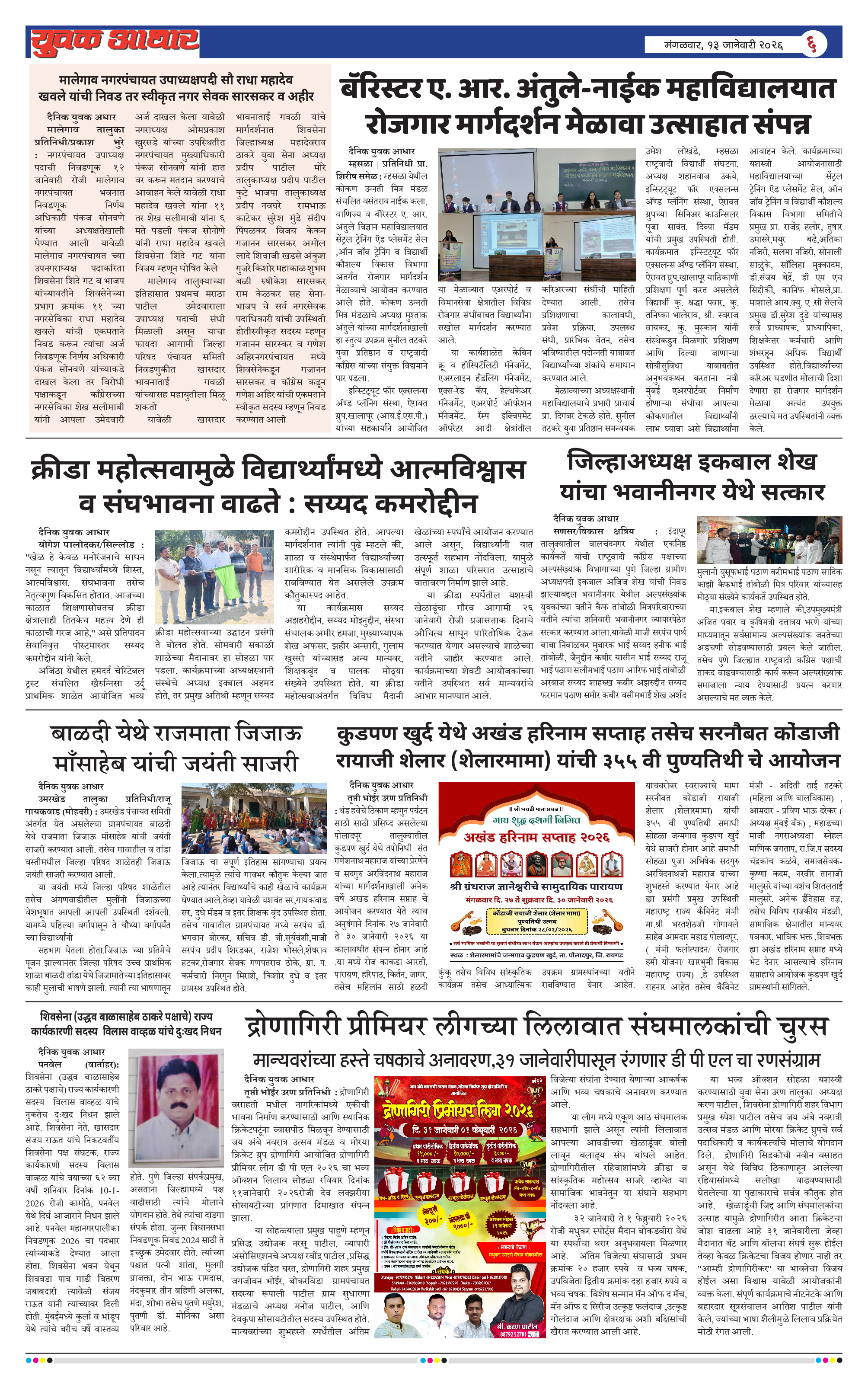 YUVAK AADHAR Page: 6 January 13, 2026 << First << 6 >> Last >> Page 1Page 2Page 3Page 4Page 5Page 6Page 7Page 8 × YUVAK AADHAR << First << 6 >> Last >> Page 1Page 2Page 3Page 4Page 5Page 6Page 7Page 8