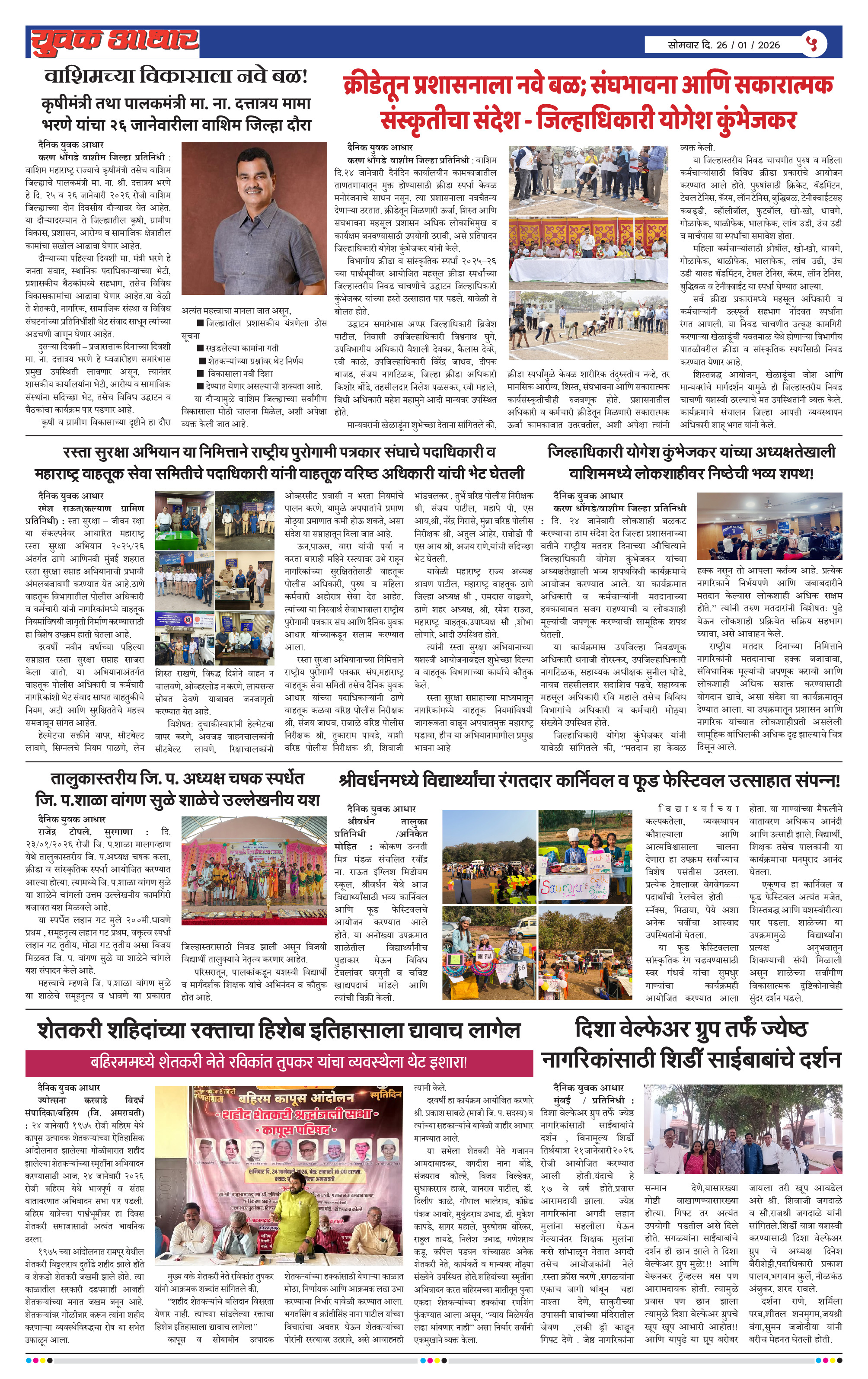 YUVAK AADHAR Page: 5 January 26, 2026 << First << 5 >> Last >> Page 1Page 2Page 3Page 4Page 5Page 6Page 7Page 8 × YUVAK AADHAR << First << 5 >> Last >> Page 1Page 2Page 3Page 4Page 5Page 6Page 7Page 8